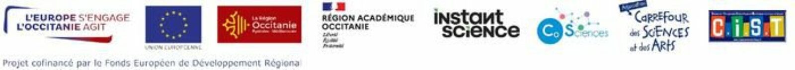 Un projet coproduit par Instant Science (fusion de Science Animation et À ciel ouvert), Carrefour des Sciences et des Arts, Cosciences et le CIST (Centre de l’Imaginaire Scientifique et Technique), et financé par la Région Occitanie et les fonds FEDER.
