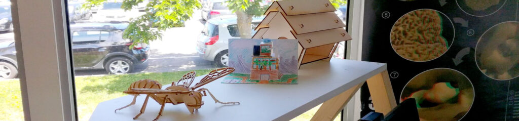 La fabrication d’un nichoir à oiseaux était l’occasion d’évoquer l’érosion de la biodiversité induite par les constructions urbaines, de parler aussi des traitements biologiques de la chenille processionnaire par la mésange charbonnière, et d’échanger sur la place de la nature en ville. La création du planeur en balsa était généralement précédée d’un échange théorique sur les propriétés de vol et les caractéristiques du planeur. La fabrication manuelle de l’assemblage et des tests en vol est très complémentaire de la fabrication numérique.