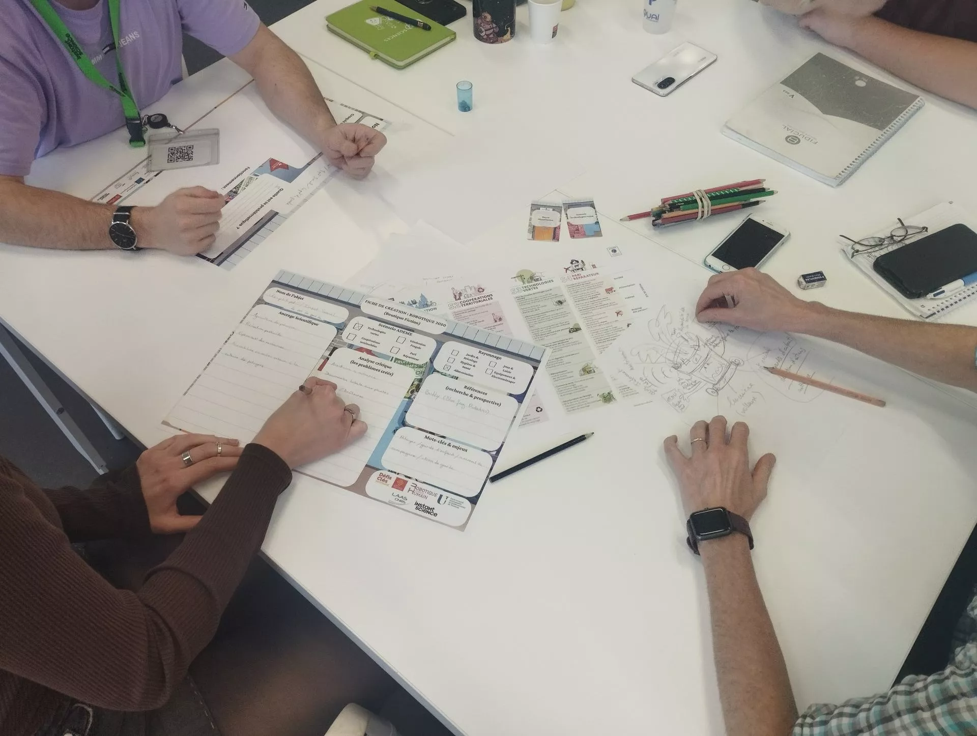 La suite du projet consiste à imaginer des objets et services qui rejoindront la Boutique fiction. Aussi, lors d’une séance de créativité, programmée en décembre 2025, Instant Science a mobilisé les personnes impliquées dans le projet, mais aussi d’autres membres de l’équipe pour diversifier les profils et augmenter la créativité ! Chaque groupe disposait d’une contrainte : créer un objet ou service s’inscrivant dans l’un des scénarios de l’ADEME (par exemple : un futur basé sur la coopération territoriale). Résultats : des robots permettant de gérer des jardins partagés, un robot d’aide aux personnes âgées, ou encore un bâton sauteur pour se déplacer.