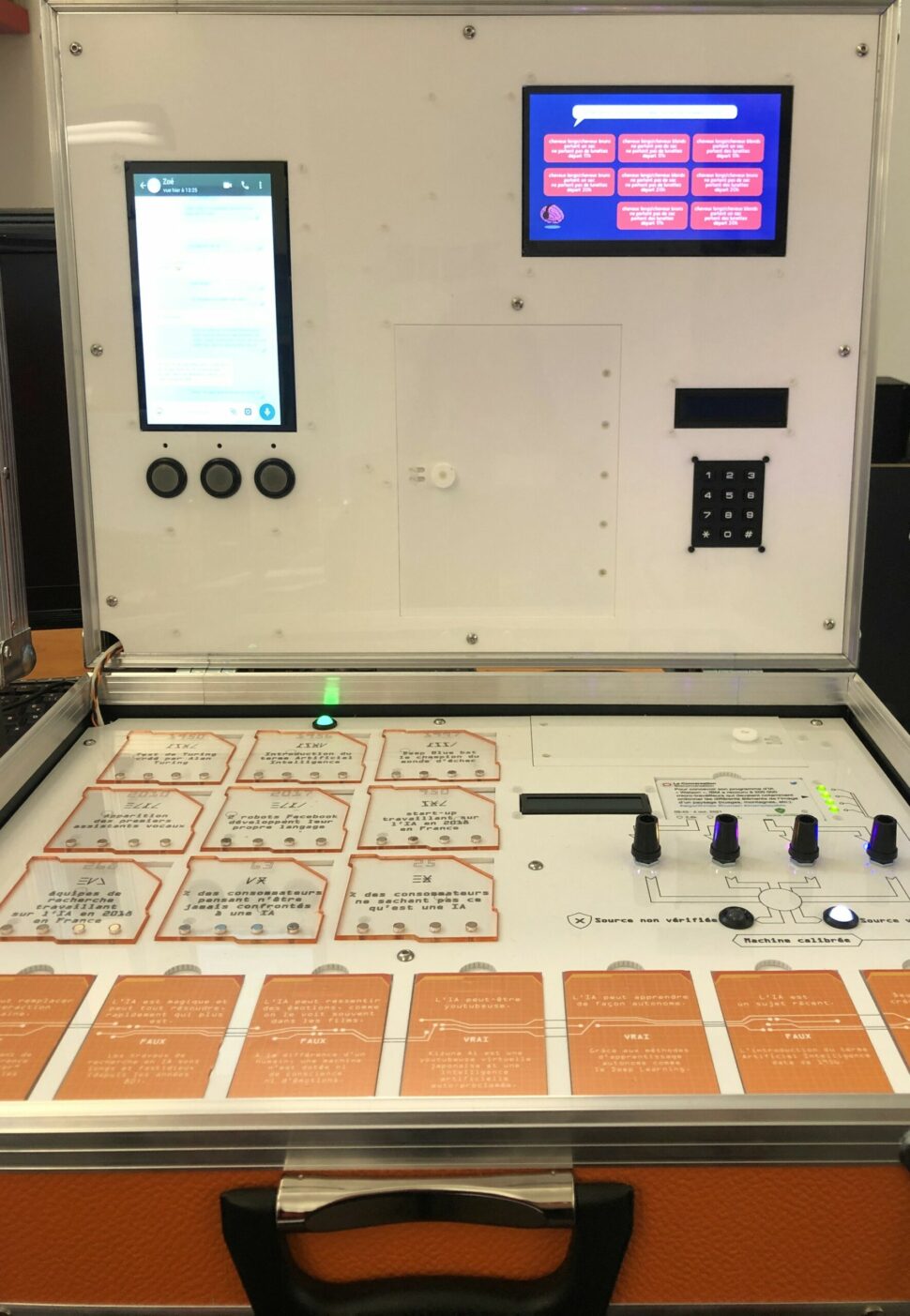 Que savez-vous de l’intelligence artificielle ? Il existe beaucoup d’a priori et de fantasmes autour de ce sujet, c’est pourquoi JEPEIA propose d’aborder les questions que soulève l’IA auprès des adolescents et des adultes. L’escape game est composé de 4 mallettes sur lesquelles des groupes de 4 à 7 personnes peuvent jouer en simultanée et d’une mallette supplémentaire – commune à toutes les équipes – qui permet de résoudre l’enquête. Au fil des 8 énigmes, tout en s’amusant, les participants en apprennent un peu plus sur l’IA !